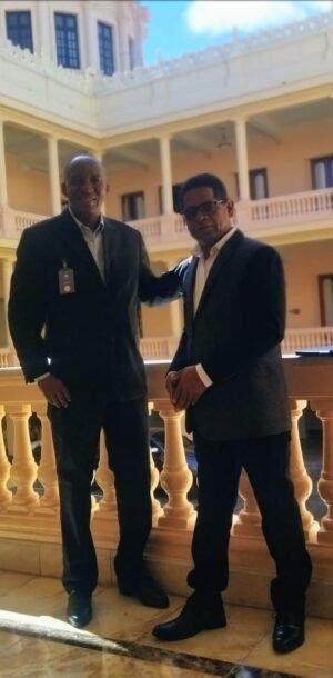 El líder comunitario y presidente de la Fundación por los Ideales del Doctor Peña Gómez, fue recibido por su amigo de larga data licenciado Alberto Caminero director de Comunicación del Presidente de la República en su despacho del palacio nacional, en un encuentro de diálogo institucional en el que se trataron temas de interés nacional, así como iniciativas sociales alineadas con la visión de desarrollo que impulsa el Gobierno.