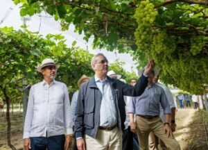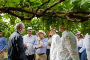 De igual forma, el presidente Luis Abinader visitó el proyecto Uvas San Juan, una iniciativa privada que forma parte del Plan San Juan, y que representa la primera producción certificada de uvas sin semillas en República Dominicana, cuya primera cosecha comercial será lanzada en diciembre.