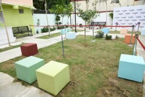 Como parte del proyecto, se construyó un área de esparcimiento para el uso comunitario, contribuyendo a la recuperación urbana y al aprovechamiento de los espacios públicos del sector Los Peralejos.