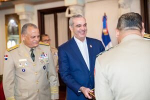 Santo Domingo. – El presidente Luis Abinader, expresó este viernes su orgullo y admiración por las Fuerzas Armadas y la Policía Nacional, al encabezar el acto de salutación solemne de oficiales que conmemoran 35, 30, 25 y 20 años de servicio ininterrumpido, resaltando que la República Dominicana se ha consolidado como “un faro de paz, tranquilidad y estabilidad” en la región gracias al fortalecimiento y trabajo de estos cuerpos.