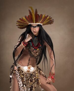 Estos tocados complementarán el exquisito vestuario, que está a cargo de Renata Cruz Carretero, quien, con cada diseño, busca respetar la estética corporal taína, cultura que consideraba el cuerpo como un espacio sagrado, donde el uso de plumas multicolores y prendas de caracoles, madera, oro, conchas o huesos, servían para manifestar la armonía con el entorno tropical y lo divino.
