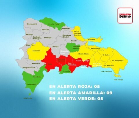 ENREDADORD SANTO DOMINGO.- El Centro de Operaciones de Emergencias (COE) colocó este viernes a cinco provincias en alerta roja y nueve en amarilla, debido a la incidencia de una vaguada